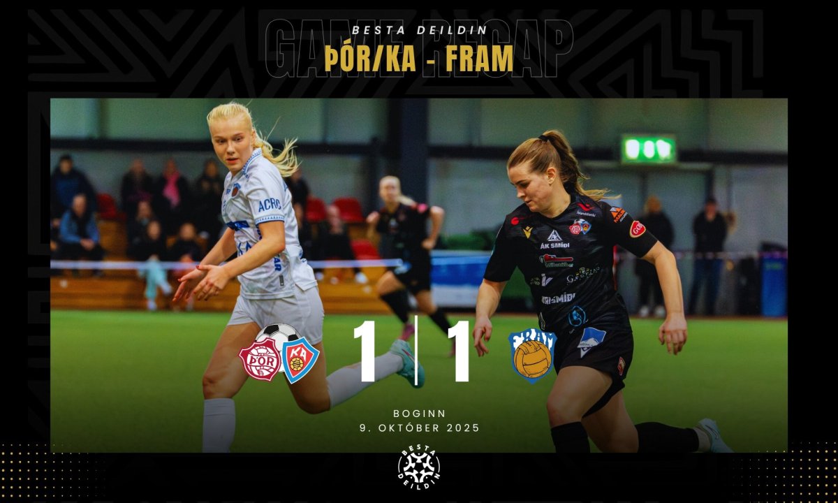 Fram komst yfir með marki á 35. mínútu, en aðeins örstuttu áður hafði Þór/KA fengið dauðafæri. Karen María Sigurgeirsdóttir jafnaði leikinn með glæsilegu marki langt fyrir utan vítateig þegar tæpur stundarfjórðungur var liðinn af seinni hálfleiknum. Litlu munaði að við næðum inn sigurmarki á lokasekúndunum þegar Ellie Moreno átti fyrirgjöf fyrir markið og þrjár úr okkar liði, Emelía Ósk Krüger, Ísey Ragnarsdóttir og Henríetta Ágústsdóttir, áttu marktilraunir, varnarmenn og markvörður Fram komust fyrir skotin.