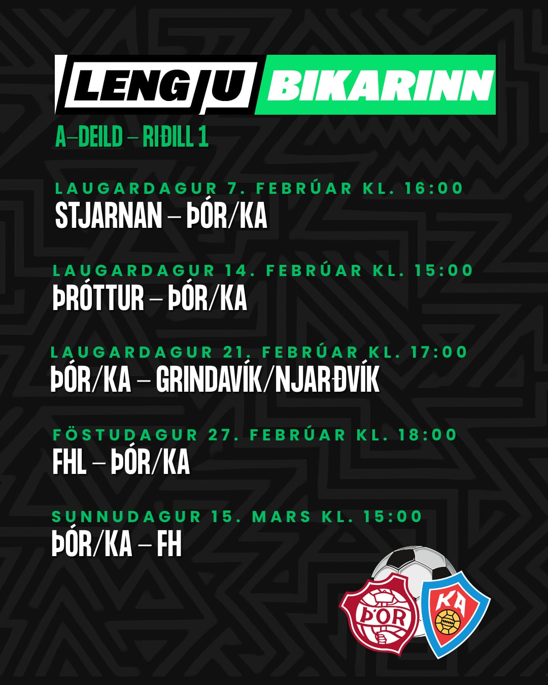Þór/KA er í riðli 1 í A-deild ásamt FH, FHL, Grindavík/Njarðvík, Stjörnunni og Þrótti. Heimaleikir verða gegn Grindavík/Njarðvík og FH, en liðið fær þrjá útileiki þetta árið.