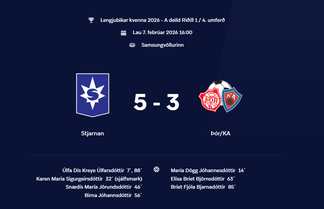 - 5-3 - Úlfa Dís Kreye Úlfarsdóttir (88').