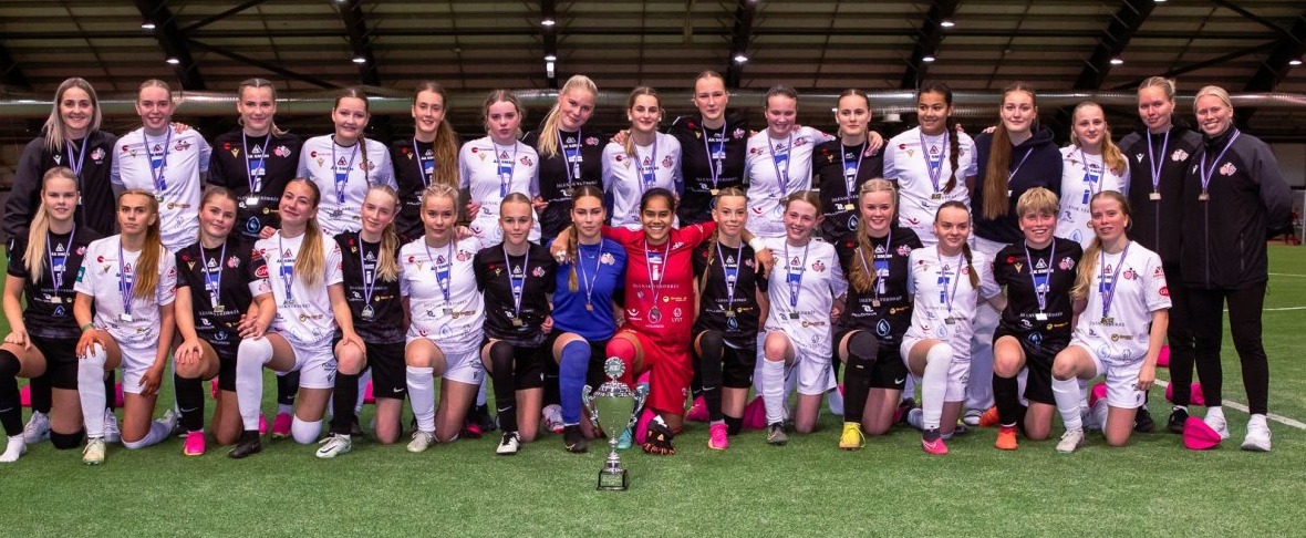 Á lokahófi - Hluti þeirra leikmanna sem komu við sögu í leikjum 2. flokks U20 á árinu 2023. Íslandsmeistarar í A-deild, silfurverðlaun í B-deild.